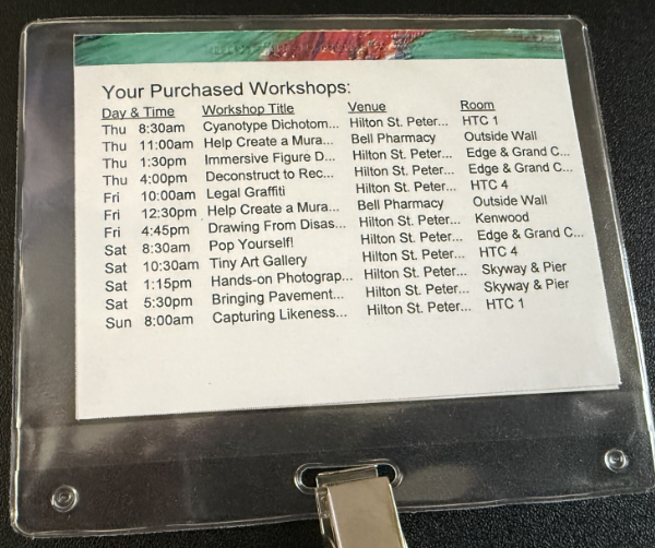 Hands-on workshops have 30 minutes between sessions, and Art Forums only have 10 minutes between. For Workshops, please plan to show up at least 15 minutes early, if not earlier, and introduce yourself as the facilitator to the presenter.