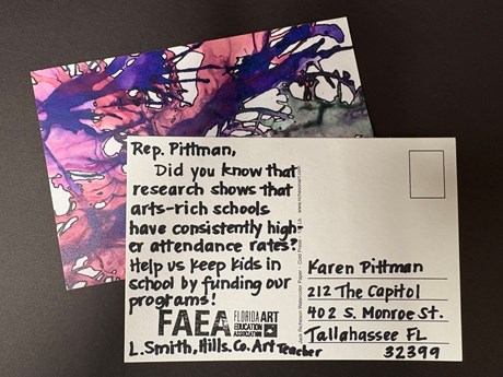 If you're attending the 2025 FAEA Conference, make sure to stop by the Artful Happenings sessions led by the Advocacy Committee co-chairs, Natalie Potacco & Laura Hobby, to create your own postcard.