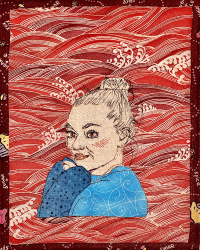 appliqué, embroidery, hand quilting, assorted cotton fabrics, cotton and metallic thread